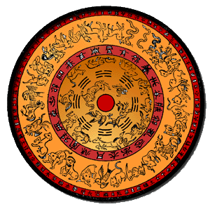 | Tafeln aus einer kaiserlichen Enzyklopädie aus den Jahren zwischen 1736 und 1795 mit dem Namen Abschließende Aufzeichnungen und Unterscheidungsrichtlinien. Manche Funktionäre der Schwarzen Sekte behaupten, dass dieses Dokument das Bagua enthält, das nun von den New Age und Schwarzsekten-Praktikern benutzt wird. Dies Tafeln zeigen die Anodnung der Maßeinteilungen für einen bestimmten Tag innerhalb eines Zyklus' von zehn Tagen. Die obere Tafel zeigt Yang, die untere Yin; Die Zeichen werden eingerahmt von den Markierungen für die vier Hauptrichtungen, die Himmelsstämme und Erdenäste, Die Hexagramme des I-Ging und andere wichtige Bereiche. | | Die "Neun Grundheilmittel" des Kreativen und tantrischen Schwarzsekten-Feng Shui -
